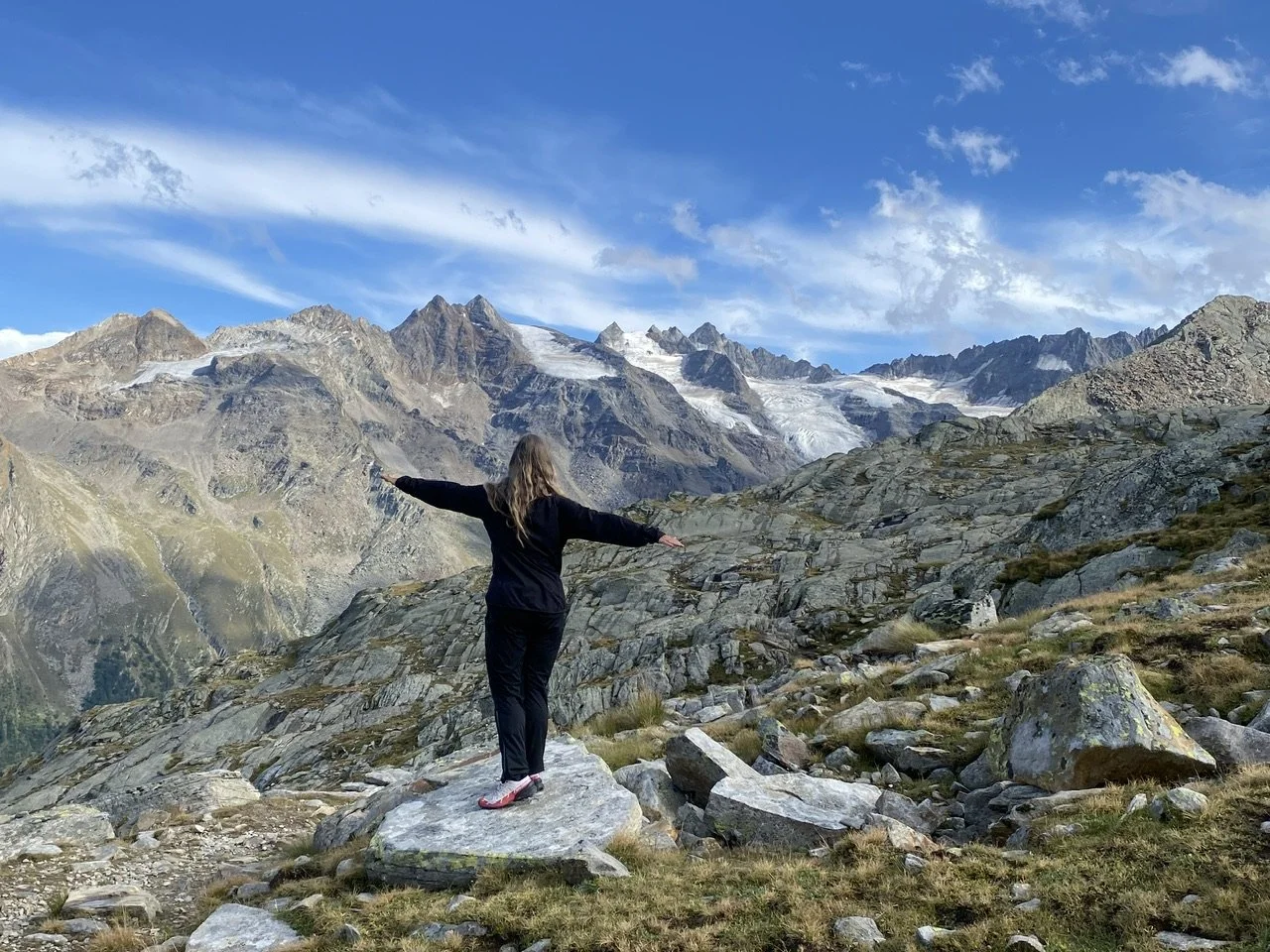 Så nu er jeg her på bjerget, hvor der er udsigt og indsigt, og hvor det hele både føles hårdt og nemt. For at lære. Jeg mærker min egen skrøbelighed og styrke og hvordan jeg på engang føles betydningsfuld for mig selv og samtidig så betydningsløs i den store natur, i det store univers. Bare et lille bitte væsen, hvis tid på jorden er mindre end en milliardnedel af et mikrosekund af jordens tid i universet.