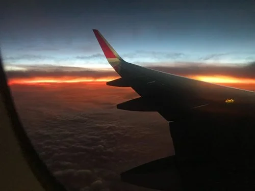 Har jeg sagt, at jeg er forelsket i planeten jorden? Heroppe over skyerne, kastet ud i en flammende solopgang, står det så klart for mig, hvor fint smukt og mirakuløst mit liv er. Alt andet forsvinder et øjeblik... nuancer og gråtoner, ja selv indsigt og udsigt forsvinder... tilbage er den rene følelse af at høre til og være til...lige nu... Måske vi ikke behøver at komme helt op over skyerne for at se det... vi kunne jo også bare finde det i sprækker i dagligdagen dernede med fødderne solidt plantet på jorden? Spørgsmålet er hvor jeg skal kigge efter det? Hvor kigger du?