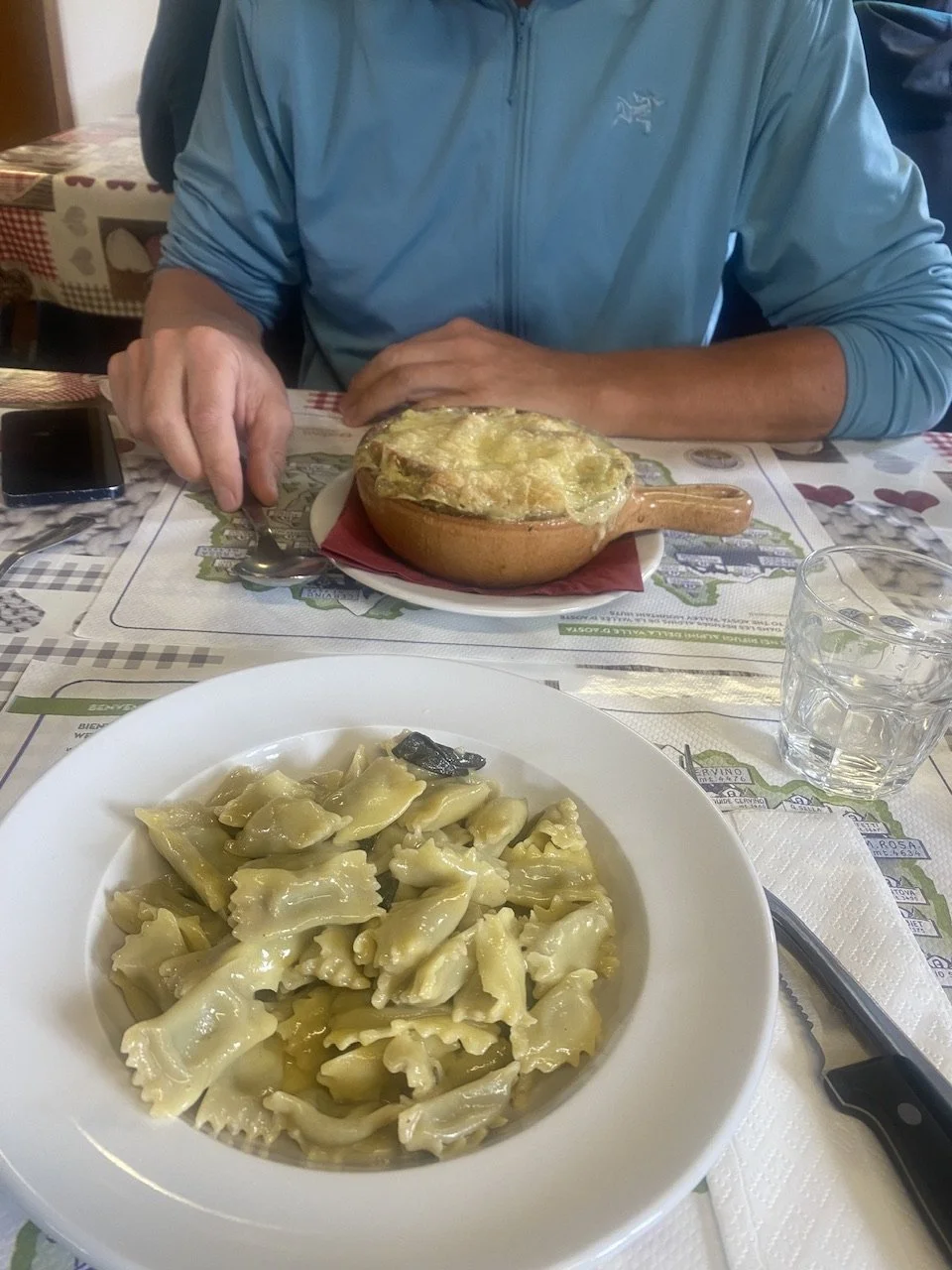 Vi når refugiet til frokost tid. Vi spiser (jeg er taknemmelig for vidunderlig pasta med smør og salvie) og vi beslutter os for at gå et trail på 2-3 timer op til en bjergsø.