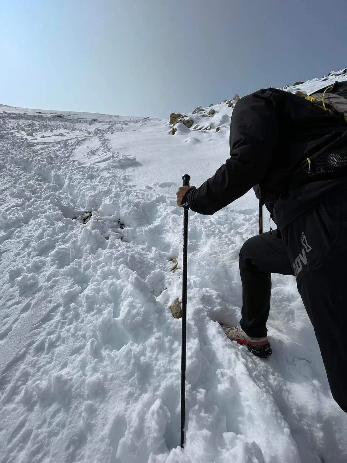 Vi går mod et pas i 3000 meters højde som vi skal passere i 20 cm sne.