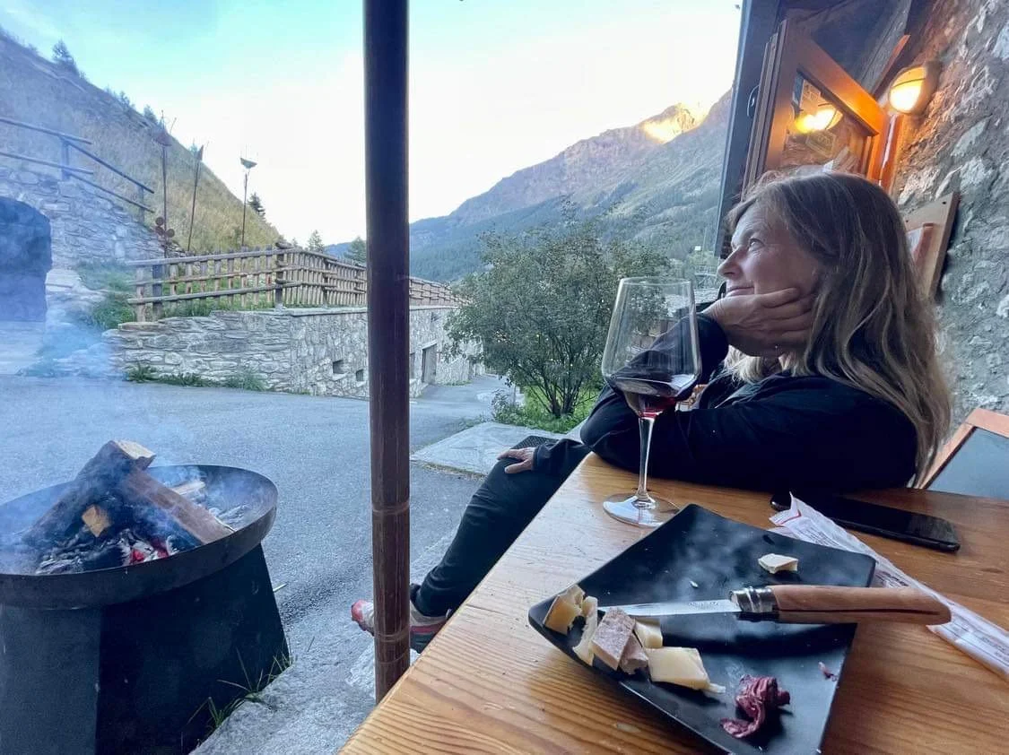 Det bliver til en dag med cappuccino og crossaint i solen, frokost på restaurant, et langt varmt bad, italiensk is, middag på et hyggeligt lille hotel, hvor vi først nyder et glas vin og lidt tapas ved varmen fra et bålfad (åh jeg har noget med bål. Flammerne, ildens knitren, varmen - det gør noget særligt for mig) og bagefter spiser vi os igennem 3 retter… jeg indtager og indtager alt det jeg kan, uden at tænke på at tage det ind. Nærværende og fraværende på engang… men alligevel i nuet, træt og grinende. Det er også livet.