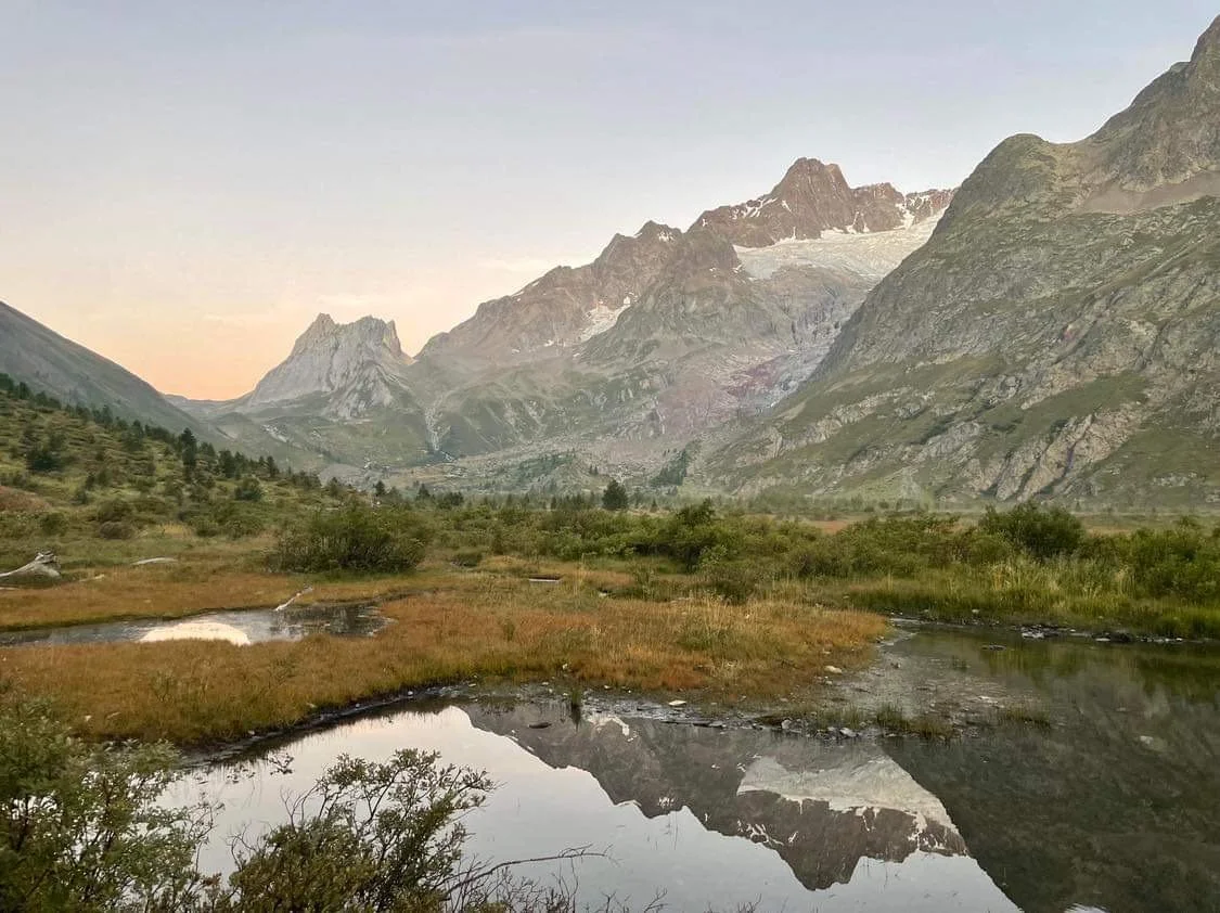 Jeg takker ydmygt farvel til bjergene med en solopgang ved foden af Mont Blanc. Nu kalder et par forkælelsesdage ved Lake Como og så skal jeg hjem og tage fat i hverdagen, før den tager fat i mig.